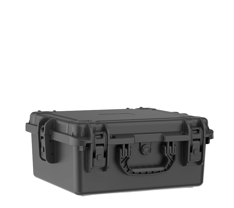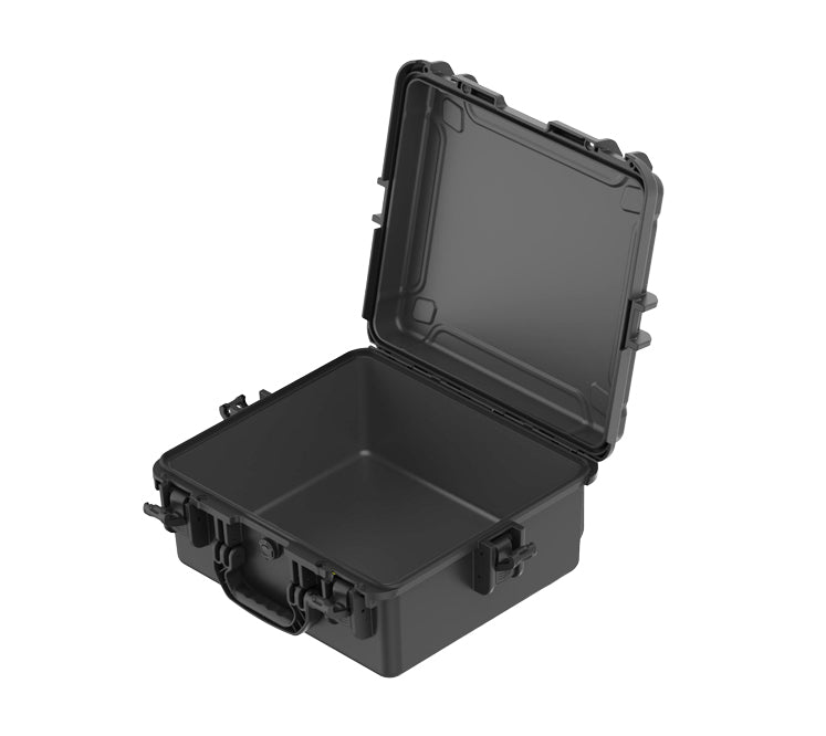 The EW4119-N hits the sweet spot between capacity and convenience. Internal dimensions of 410 × 360 × 189 mm accommodate cameras, test equipment, tools, and electronics without excess bulk. The 150 mm base depth provides secure cushioning while keeping the overall profile manageable at just 3.55 kg. Waterproof polypropylene construction with multiple latches guards against impacts, dust, and moisture. A built-in pressure relief valve makes it flight-ready for professionals on the move.
