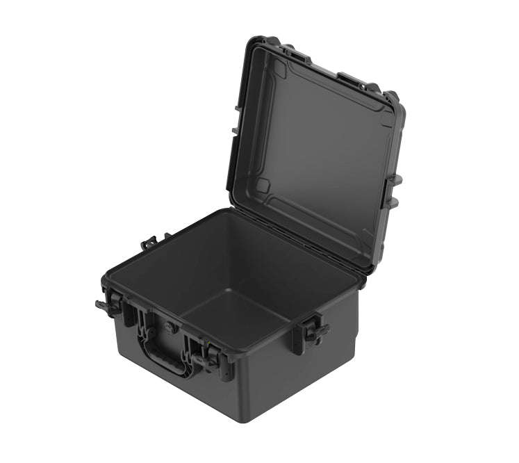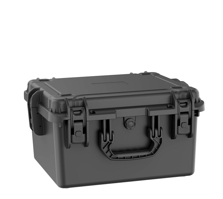 Need depth without bulk? The EW4124-N features a cube-style design with a 200 mm deep base - perfect for cameras with lenses mounted, drone kits, or equipment that won't fit in shallow cases. Internal dimensions of 410 × 360 × 239 mm provide room for taller items while the compact footprint stays manageable at just 3.80 kg. Waterproof polypropylene construction with secure latches protects contents from impacts, dust, and moisture. The pressure relief valve ensures safe transport through altitude changes.