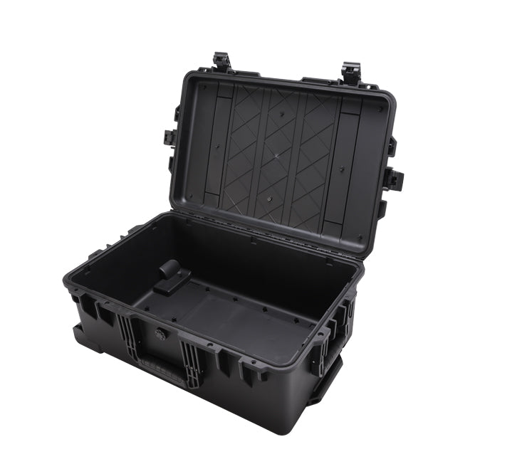 Transport large equipment confidently with the EW6825-TR. This upright trolley case provides 680 × 430 × 250 mm of internal storage in a sleek, maneuverable design. Perfect for audio equipment, lighting gear, medical devices, and multi-instrument kits. The polypropylene shell guards against impacts and environmental hazards, while the telescopic handle and side grip offer flexible carrying options. Weighing 9 kg, it balances capacity with portability.